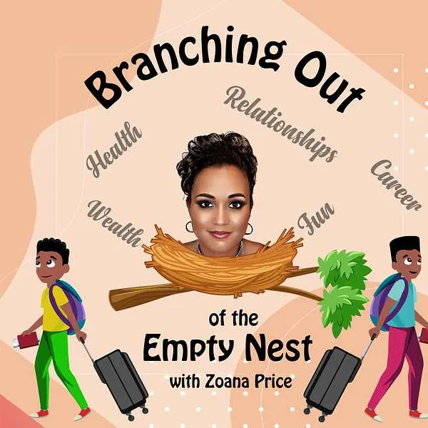 Branching Out of the Empty Nest with Zoana Price covers topics such as health, wealth, relationships, downsizing, retirement, caring for aging parents, and career development. It provides tools, insights, and resources to help empty nesters live their best lives.